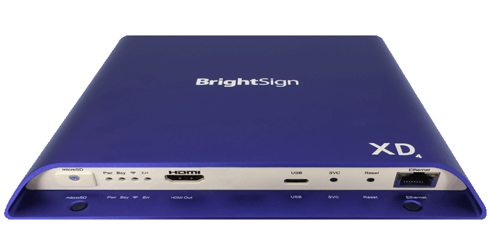 BrightSign XD1034 includes all the features of BrightSign XD234 plus additional interactive options with the added serial and dual USB 2.0 (type A and C) ports for engaging interactive displays.
