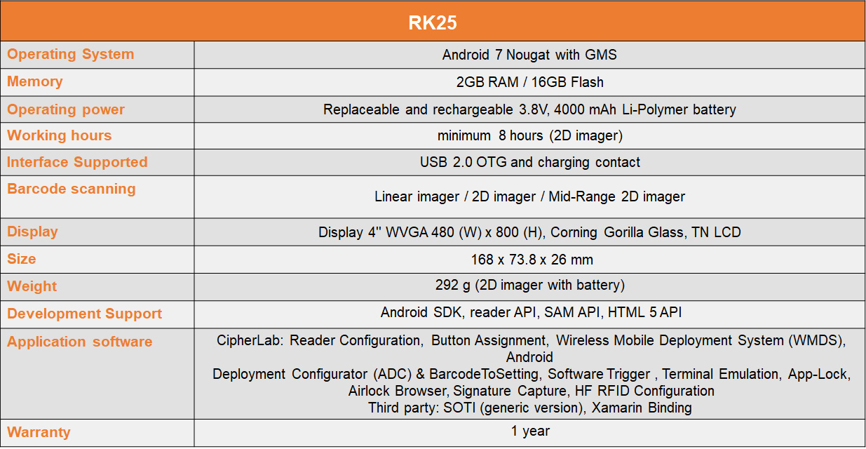 • The RK25’s industrial ruggedness and comprehensive offering in accessories and