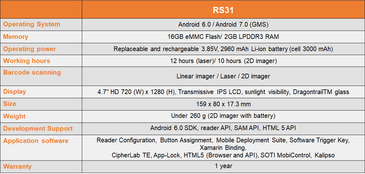 CipherLab RS31Touch Mobile Computerspecifications that satisfies the demanding industries of the field sales, field service, retail and healthcare. and take business into the future. communication make it an optimal tool for mobile workers. |