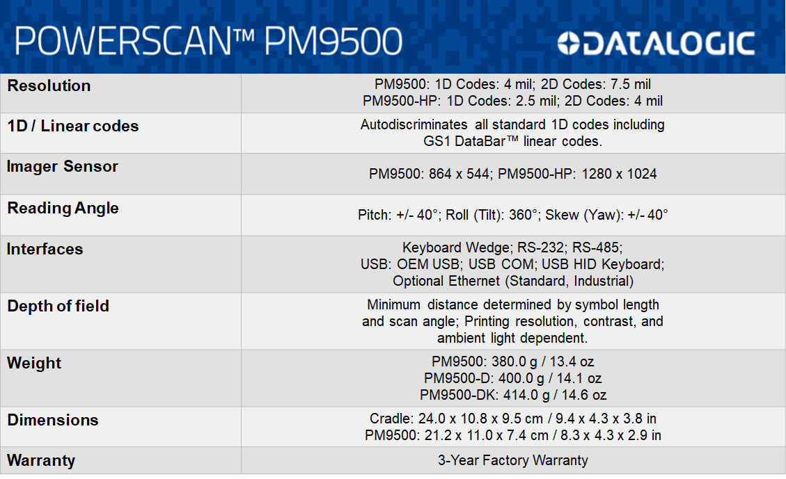 • DataLogic PowerScan™ PM9500 Series Specification