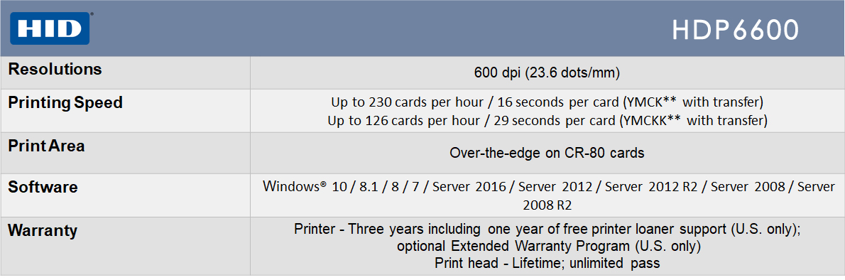 HID® Fargo® HDP6600 Specification