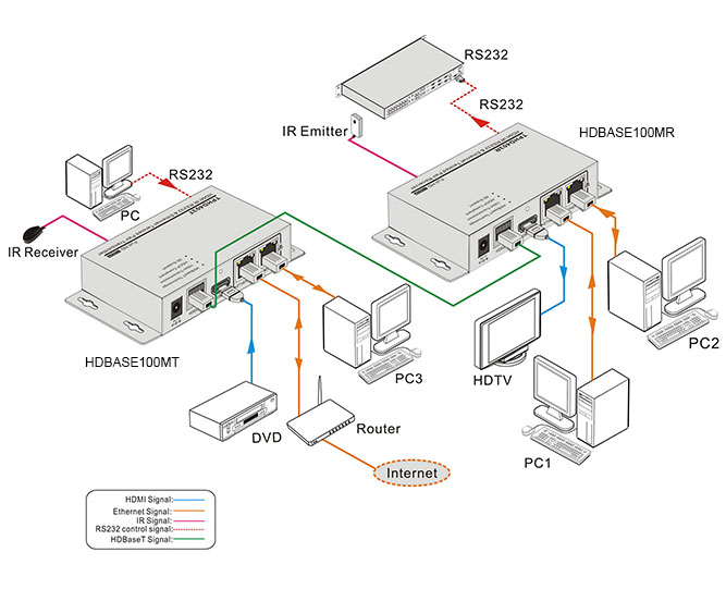 • The KanexPro HDBASE100ME is a 4K compliant transmitter - receiver set that