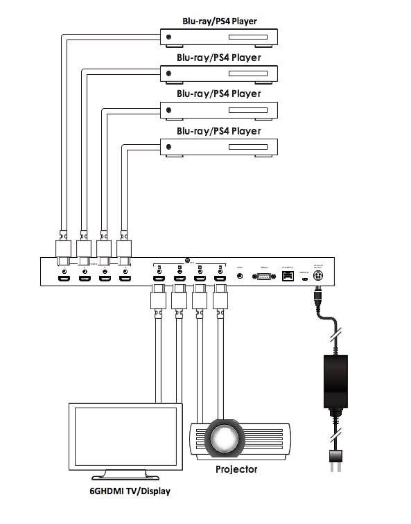 • Cross-switch 4 HDMI devices to 4 HDMI displays in 4K@60Hz