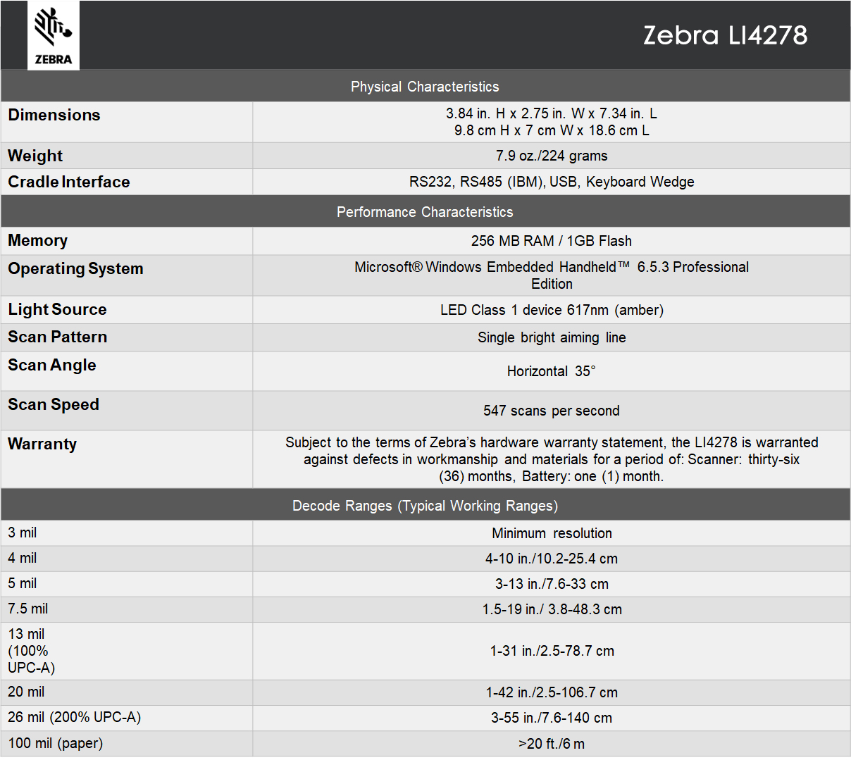 The LI4278 takes 1-D bar code scanning to the next level, allowing workers to scan faster and further.